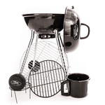 18.5" Elite Kettle Grill Built-in quick start paper ignition system does not need lighter fluidFeatures 241sq.in. of cooking spacePorcelain coated lid and bottom bowlComes with an extra-large ash canAdjustable air damperBuilt-in lid hangerChrome coated wire cooking grateSturdy chrome legsBottom shelf storage6â Wheels ... View Details » |