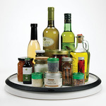 Good Grips 16" Turntable Find all your necessary pantryware items with a quick spin of the OXO Good Grips 16" Turntable. The Turntable provides easy access to hard-to-reach items like spices sauces cleaning products or tabletop accessories. It can be used on countertops tabletops and in cabinets. With non-slip feet and a deep ledge the Turntable keeps your items upright and in place. An innovative wide base design prevents the Turntable from interfering with nearby items or walls as the top tray spins freely. This sm ... View Details » |