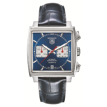 TAG Heuer Men's Monaco Chronograph Watch TAG Heuer Monaco men's watch is engineered and designed to reflect the power and speed of motor racing cars. This watch has automatic calibre 12 movement at 28,800 vibrations per hour. This iconic watch has a domed sapphire crystal, a blue dial with chronograph displaying seconds at 3 o'clock and minutes at 9 o'clock, a date display at 6 o'clock, luminous markers and red detailing. The watch is secured by a fine blue alligator leather strap with a deployment clasp. ... View Details » |