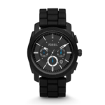 Fossil Men's Machine Chronograph Silicone Watch This chronograph watch features a knurled case that's sure to get noticed. The black silicone strap mimics a metal bracelet for a truly interesting timepiece. ... View Details » |