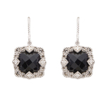 Onyx and Diamond Earrings Fresh modern new take on classic gemsBeautiful faceted black onyx stonesOnyx is surrounded by .03twt round diamondsDiamonds are set in a vintage design on sterling silverTotal weight (twt) refers to total size of the combined diamondsSterling silver has an e-coat so it does not tarnishShips in purple Jilco gift box with a decorative ribbon and protective tissue paper ... View Details » |