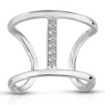 Contemporary Diamond Cuff Ring A beautiful diamond ring with clean lines and a contemporary styleDouble rows of .10twt round brilliant cut diamondsDiamonds are set in sterling silverOne size fits allSterling silver has an e-coat to help prevent tarnishingShips in a purple Jilco gift box or pouch with tissue paper and decorative ribbon ... View Details » |