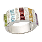 Channel Set Gemsone Ring Size 7 Experience exquisite luxury with a multi-gemstone ringGemstones are sure to capture brilliant light with colorful gemstonesFeatures multiple gemstones in a beautiful channel set square cutContains amethyst blue topaz citrine garnet and peridot set in sterling silverAccented with round white topazSterling silver contains an e-coat to help prevent tarnishShips in a purple Jilco gift box or pouchComes with protective tissue pape ... View Details » |
