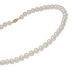 Pearl Necklace Pearls speak volumes about the caliber of the woman who wears themClassic and modern pearls scream sophisticationFeatures 6-6.5mm cultured pearls on hand knotted strandSecurely closed with a 14k yellow gold fish hook claspNecklace measures 18â longCultured pearls are farmed in saltwaterShips in a purple Jilco gift box or gift pouch with tissue paper and decorative ribbon ... View Details » |