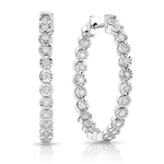 Diamond Inside-Out Hoop Earrings White Gold Dazzling diamond hoop earrings are perfect for a night out or a fancy dateFeatures .75twt stunning diamonds lined around the hoopDiamonds are set in miracle plates which present a pretty flower motifAppearance looks as though the diamond carat weight is doubleFeatures 10k polished white goldFor pierced ears onlyDiamonds are hand selected for brilliance quality and valueTotal Weight (twt) refers to total sized of the combined ... View Details » |
