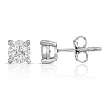 Diamond Solitaire .50twt Stud Earrings Diamond solitaire earrings with a shimmering round cutFeatures .50twt round brilliant cut diamondsDiamonds are set in polished sterling silver postsFor pierced ears - classic post backTotal weight (twt) refers to total size of the combined diamondsSterling silver has an e-coat so it does not tarnishShipped in a custom purple Jilco gift box that delicately holds jewelryThe gift box features a ribbon and protective tissue paper ... View Details » |
