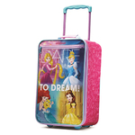 Disney Princess 18" Sofside Upright Roller Bag Perfect size for your little one and easily fits as a carry-onPrinted polyester and vinyl frontFront features characters from Disney princess moviesSide-mounted skate wheels for mobilityEasy pull handleInterior panel features large mesh pocketsInterior cross straps hold luggage in placeAmerican Tourister branding on top carry handle back panel and zipper pullsDimensions: 18â x 12â x 7â ... View Details » |