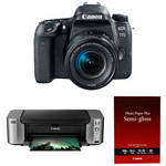 EOS 77D DSLR Camera Body with Inkjet Printer Kit Comprising everything needed to shoot and print high-resolution photographs, the Canon EOS 77D DSLR Camera with Inkjet Printer Kit from B&H bundles the advanced DSLR with a PIXMA PRO-100 wireless inkjet printer. ... View Details » |