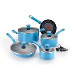 Excite 14-Piece Cookware Set - Blue Turquoise The T-fal Excite 14-Piece Cookware Set features an even base which allows for even heat distribution for reliable cooking results. The non-stick interior is scratch resistant making cooking and cleaning easy. The ergonomically designed and heat resistant handles allow for an easy transition from stove top to oven. ... View Details » |