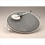 Pizza Stone Set Bake, slice, and serve in style with this All-Clad Gourmet 13-Inch Pizza-Stone Set. The porous soapstone distributes heat evenly while absorbing moisture in the dough, ensuring a crisp, golden-brown crust every time-perfect for homemade pizza, breads, even meat or fish. Because it remains hot after leaving the oven, the baking stone also works great for serving hors d'oeuvres. The stoneware can be pre-seasoned and oiled for enhanced nonstick performance. ... View Details » |