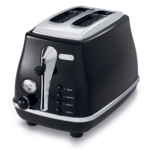 DeLonghi Icona 2 Slice Toaster The Icona CTO 2003 is a 2-slice toaster with the power of 900W and a unique high gloss finish with chromed details. It features electronic controls which include: reheat, defrost, one-side bagel and cancel. Additionally, the CTO 2003 has a removable crumb tray, non-slip feet, and progressive, electronic browning control. Color: Black ... View Details » |