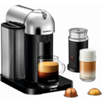 Nespresso Vertuo Espresso and Coffee Machine Create crema-laden coffee drinks in minutes with the versatile Nespresso Vertuo single-serve coffee machine. Compatible with Nespresso's range of large and small pods, this unit has a large-capacity tank so you can brew multiple beverages without refilling. The Nespresso Vertuo single-serve coffee machine incorporates Centrifusion extraction technology, which brews coffee and espresso gently for a fuller flavor. Color: Chrome ... View Details » |