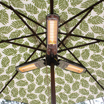 Umbrella Halogen Patio Heater The Umbrella Halogen Patio Heater introduces a new revolution in outdoor heating. This halogen patio heater runs on regular household electric current and is substantially less expensive to operate than propane patio heaters. This adaptable unit can be used indoors and outdoors and attaches to any standard umbrella center pole.Steel construction delivers a silent operationNo UV rays or harmful emissions3 Attached heaters at 500 watt power eachAbout 1/10 ... View Details » |
