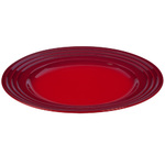 12" Dinner Plate Cherry Each piece of Le Creuset dinnerware is crafted in the same careful process as all Le Creuset stoneware â with a colorful durable exterior enamel that matches other stoneware flawlessly while protecting from utensil marks and scratches. Every plate bowl and mug is designed to complement any collection of stoneware and is finished with Le Creusetâs signature three-ring accent along the exterior.Designed to compliment any collection of stonewareDense stoneware blocks moi ... View Details » |