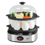 2-in-1 Egg Cooker and Steamer The Emeril Lagasse 2-in-1 Egg Cooker and Steamer features a double-tier design that allows you to cook multiple foods at once. With a 7-egg capacity per tier, you can soft, medium, or hard boil up to 14 eggs simultaneously, twice the capacity of other egg cookers. Use to steam vegetables or fish or to make rice or omelets in the included steaming bowl. A plastic measuring cup is included for filling the steamer's heating plate with water. ... View Details » |