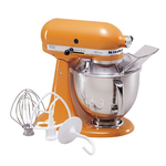 KitchenAid KSM150PSTG Artisan® Series 5 Quart Tangerine Stand Mixer Craft Classic Recipes and perimental Dishes with the KitchenAid Tangerine Stand Mixer The KitchenAid Tangerine Mixer froths, kneads and mixes simply and quickly for an even, smooth batch every time. Designed to break up chunks of sugar, whisk flour and whip butter into a creamy consistency, this mixer puts the power of simple preparation on your countertop. The perfect way to simplify the time you spend in your kitchen, this mixer has a common sense de ... View Details » |