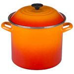 10 Qt Enamel-On-Steel Covered Stockpot Flame Designed to function efficiently on a full range of heat sources enamel on steel stockpots are not only resistant to wear and damage but also versatile enough for any type of stovetop old or new. Their high-profile design limits evaporation while forcing liquids to bubble through all layers of ingredients infusing the entire dish with flavor during cooking.Le Creuset enamel on steel stockpots are finished in the same bold palette of signature colors as Le Creuset enameled cast iron mak ... View Details » |