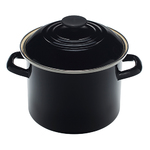 Enamel on Steel 6 Qt. Stockpot Black Designed to efficiently cook on a full range of stovetopsConstructed from heavy-gauge carbon steelHeats quickly with superior heat retentionColorful and durable porcelain enamel finishInterior resists flavor absorption and stainingPhenolic knobs are heat-resistant and stay cool to the touchTriple-welded side handles provide a secure gripStainless steel rim around the top edge prevents chips and cracksTight fitting li ... View Details » |