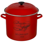 16qt Steel Lobster Stockpot Cerise New Enamel on Steel stockpots are perfect for outdoor partiesSeafood-themed stockpots go great for clam bakes lobster boil and moreFeatures a bold lobster motif with Le Creuset logoConstructed from heavy-gauge carbon steelHeats quickly with superior heat retentionColorful and durable porcelain enamel finishInterior resists flavor absorption and stainingPhenolic knobs are heat-resistant and stay cool to the touchTripl ... View Details » |