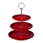 3-Tier Stoneware Stand Cherry Elegantly display cupcakes cookies quickes or crudites on the 3-tier stand. Display it on the kitchen counter or as a centerpiece on the dining table. If you decide to move it a handy ring at the top makes transferring it easy.Stoneware blocks moisture absorption to prevent cracking crazing and ripplingEnamel resists stains and scratchesNearly nonstick glaze releases foods for easy cleanupSome assembly requires (instructions included)Dimensions ... View Details » |