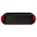 Signature Enameled Cast Iron Double Burner Grill Cherry With its roomy cooking surface that fits neatly over two stovetop burners the Extra-Large Double Burner Grill is the perfect solution for rainy days when outdoor grilling is impossible. The elongated cooking surface can accommodate steak vegetables chicken shrimp or fish. Ridges create attractive char lines and impart a smoky flavor while draining away excess fat.Cast iron distributes heat slowly and evenlyExterior enamel resists chipping and crackingInterior ena ... View Details » |