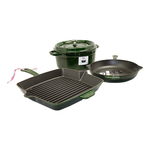 Cast Iron 4pc Cookware Set Basil Enamel coating provides the cookware with improved performance and durabilityMulti-coat enamel provides a glossy and vibrant finish for oven to table presentationCast iron transfers and retains heat evenlyResistant to rust chipping and crackingBlack matte interior enamel contains traces of quartz for heat resistance and better browningHeavy lids seal in moisture for tender and flavorful resultsCoating does not require additional seaso ... View Details » |