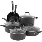 10pc Hard Anodized Aluminum Nonstick Cookware Set 3-Layered nonstick coating with titanium reinforcementTempered glass lid with vent holesRiveted stainless steel handles with soft grip sleeveOven safe up to 350FNonstick surface releases food easily for an easy cleanup2qt Saucepan with cover4qt Saucepan with cover3qt Saute pan with cover8â Fry pan10â Fry pan8qt Stockpot with coverSafe to use on gas electric halogen and ceramic stovetops ... View Details » |
