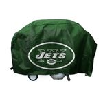 Rico New York Jets Deluxe Grill Cover Show your favorite team and protect your grill at the same time. Barbecue grill cover has team logo screened on both sides of durable mil vinyl. Fits most large gas grills, at full inches wide x inches deepl x inches tall. Includes velcro straps for holding onto grill on windy days, and felt lining to protect grill finish. Very durable grill cover protects grill from mold, mildew and extreme conditions.SpecificationsClosureCover Closure: Elastic botto ... View Details » |
