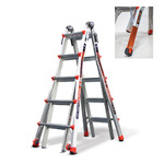 - 43 Unique configuration ladder system Adjust to A-frame extension staircase trestle and plank and moreAerospace grade aluminum construction - 20% lighterWide-flared legs with Co-molded snap-on feetCast aluminum and quad lock palm and hinge systemCast aluminum rock locks extension systemHinge lock spreader systemA-frame height: 6.1 to 11.1 feetExtension height: 13 to 23 feetExceeds all OSHA ANSI and CSA standardsWeight capacity of 300lbsANSI rating Type IA - Extra Heavy Duty Industrial