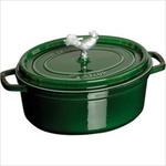 This beautiful 4.25 Quart Coq Au Vin cocotte from Staub has been created and perfected in the style of the French oven and commemorates the traditional French poultry dish in size, shape, and appearance. The self basting system consisting of distributed spikes over the whole inside flat lid ensures a continuous rainfall effect over the food inside the cocotte.