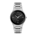Mens Silver-Tone Bracelet Diamond Watch Black Dial