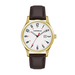 Mens Numeral Gold-Tone Case Brown Leather Strap Watch White Dial