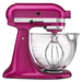 KitchenAid KSM155GBRI Artisan Design Series Raspberry Ice 5 Quart Stand Mixer with Glass Bowl