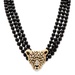 PalmBeach Jewelry Genuine Onyx and Crystal Leopard Beaded Necklace in Yellow Gold Tone |